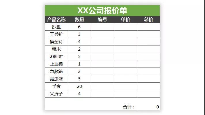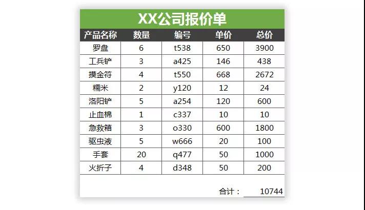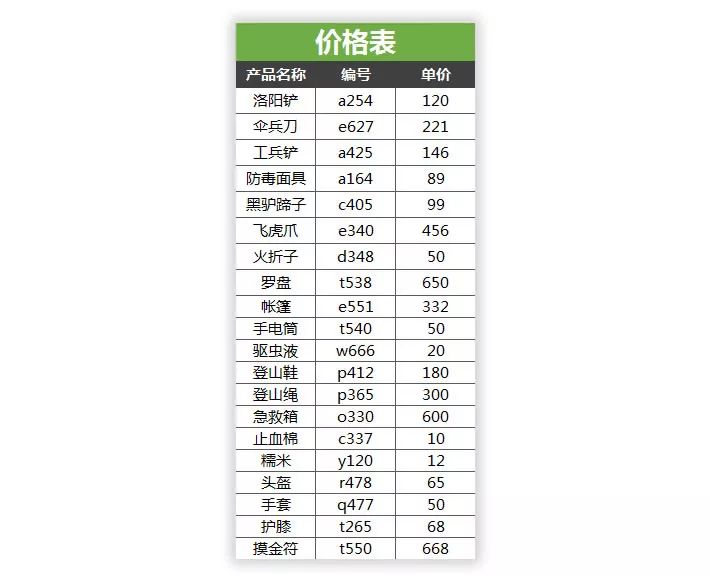 这是最终的报价表。我们可以使用VLOOKUP函数,根据用户需求产品,快速获取价格以及编号。当然,我这里只是做一个简单实例,具体大家公司表格肯定与我不同,教大家方法,还需要灵活运用。