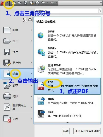 步骤一:打开AutoCAD软件,点击“文件”菜单,选择“输出”选项。