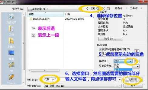 步骤二:在弹出的“输出”对话框中,选择“PDF”作为输出格式,然后设置输出文件名和保存路径。