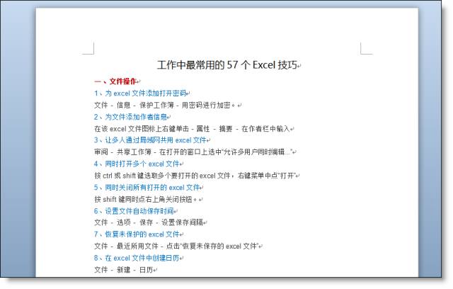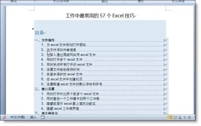 【例】57个excel技巧大全的word文件,现需要生成目录。